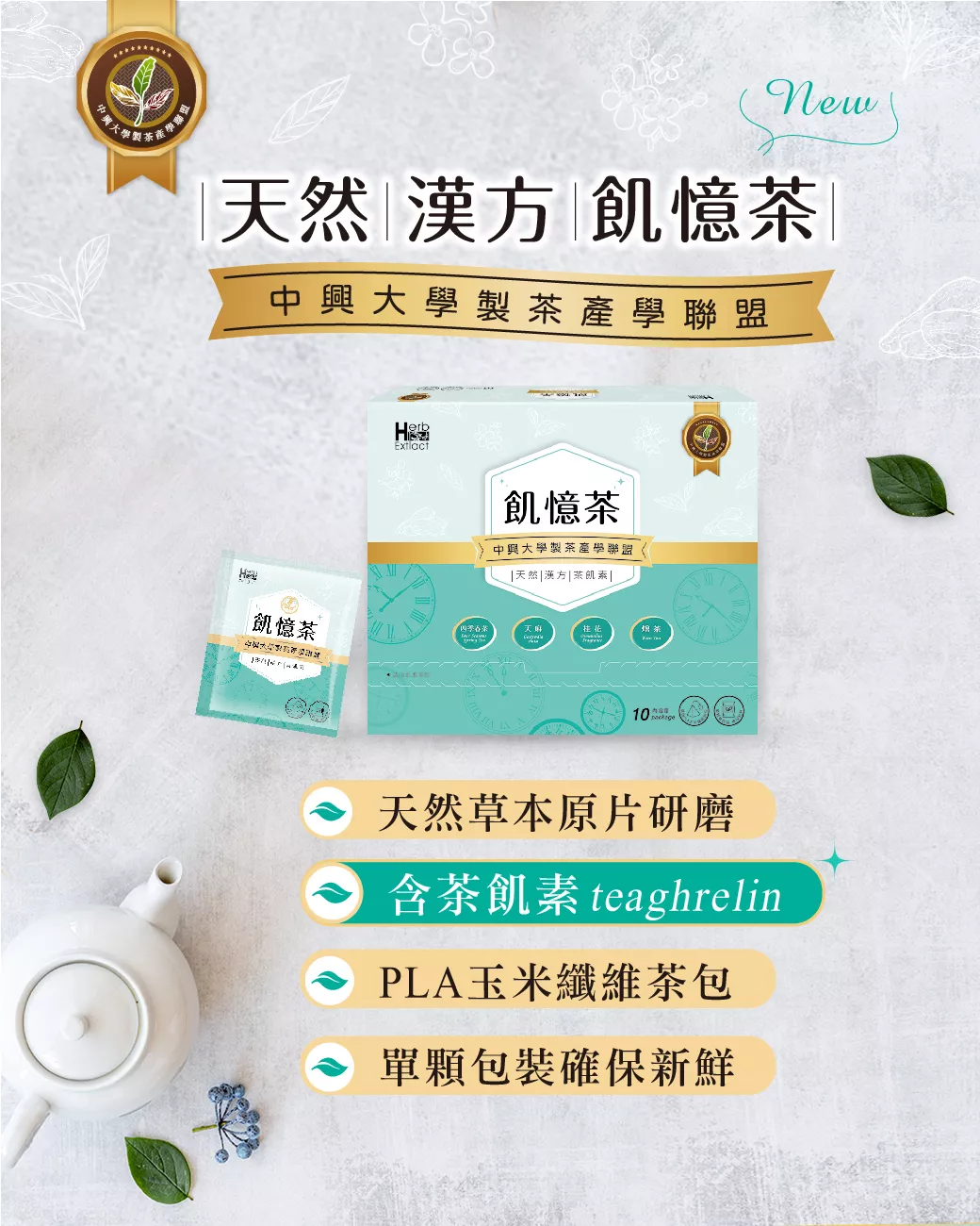 | 天然 | 漢方 | 茶飢素 | 中興大學製茶產學聯盟,SGS安心檢驗,環保PLA玉米纖維茶包,單顆單包裝確保新鮮。